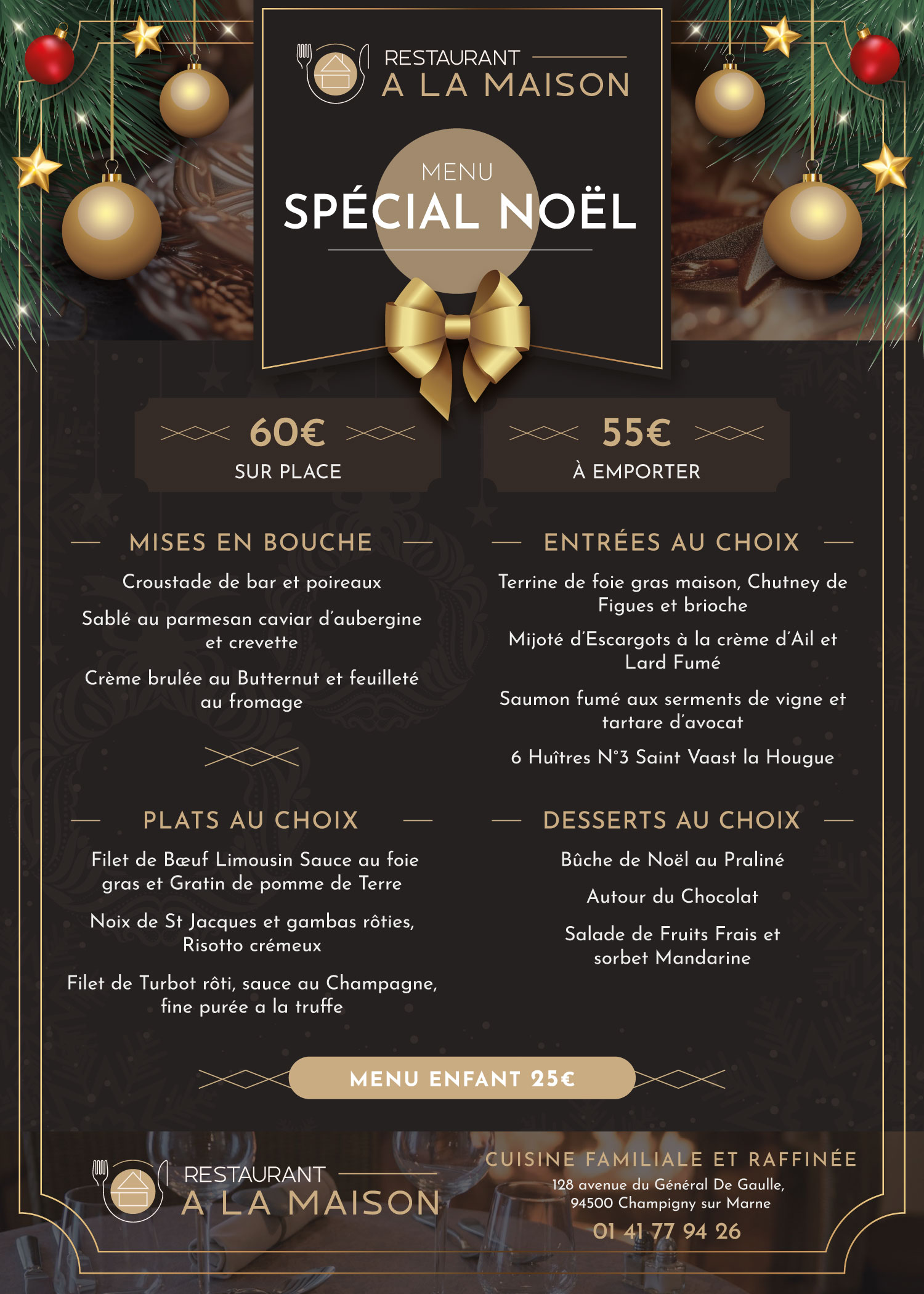 Partager un moment convivial et gourmand avec notre menu spécial pour Noël.